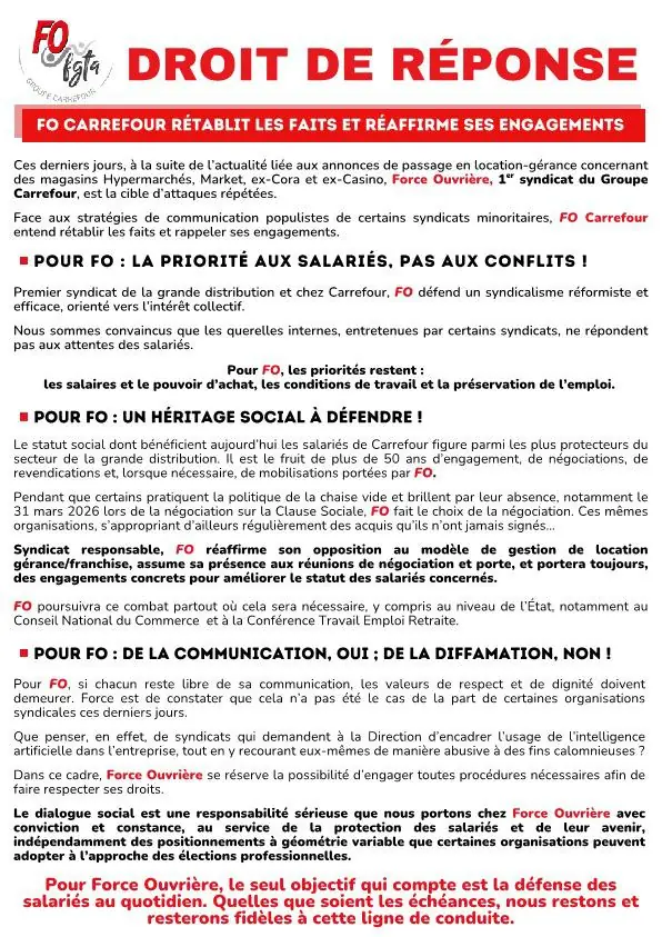 Dans un contexte économique et social toujours plus fragile, les salariés de la grande distribution, et plus particulièrement ceux de Carrefour, subissent eux aussi les effets d’un modèle commercial en perpétuelle mutation : franchises, location-gérance, réorganisations multiples, e-commerce, ventes et rachats d’enseignes… Les conditions de travail se dégradent, les emplois se fragilisent et la pression sur les équipes s’intensifie.