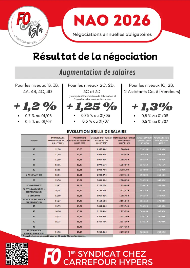 La délégation FO (de gauche à droite) : Cyril Boulay (délégué syndical de groupe), Marylène Chamand (Chartres), Semra Labalette (Écully), Alexandre Lekim (Aulnoy-lès-Valenciennes), Dominique Moualek (délégué syndical Hypers), Charles Sylvestre (Saint-Pierre-des-Corps), Pascal Vertes (Collégien), Hakima El Kaidi (Saint-Clément-de-Rivière), Thibault Dumas (Nîmes Sud), Hicham Ouaziz (Avranches)